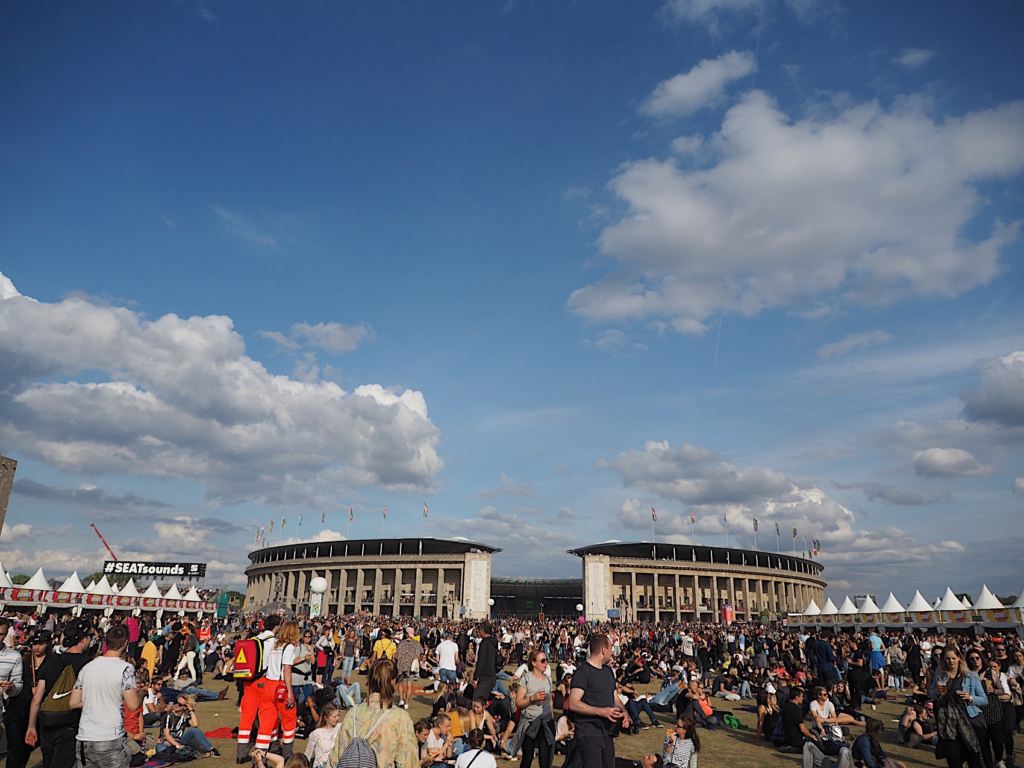 Wir quatschen viel über die Konzerte, über lustige Begegnungen, über Glitzer, das Food-Lineup und sneaken uns kurz mit euch in die grandiose Rave-Area des Olympiastadions.